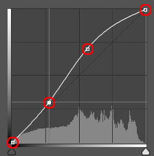 トーンカーブは、上下の端と中間の2点、あわせて4点を基準に調整しています。