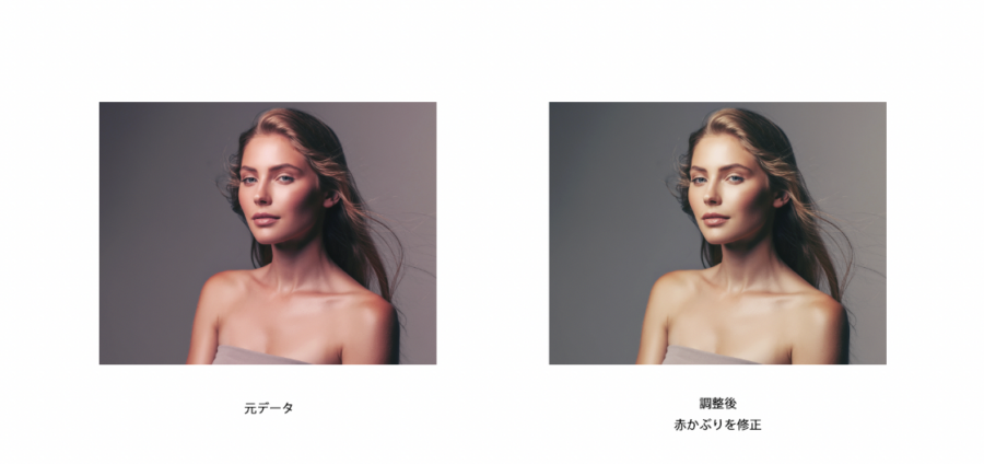 色かぶりを取り除くことで、本来の色味を正しく再現し、作品に適切なコントラスト感を与えることができます。
